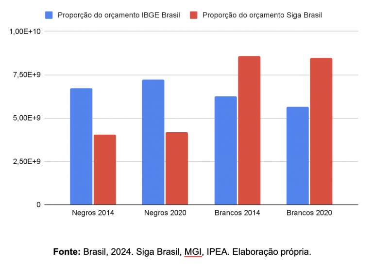 Embora entre 2014 e 2020 o número de servidores brancos tenha caído 4,27%, o orçamento destinado a esse grupo teve uma queda de 120 milhões de reais, o que representa cerca de 1,4%. A comparação entre os dois percentuais é reveladora: embora os brancos tenham diminuído em número, a perda de recursos foi proporcionalmente muito menor. O descompasso entre a queda de pessoas e a queda no orçamento evidencia que os brancos continuam recebendo melhores salários.