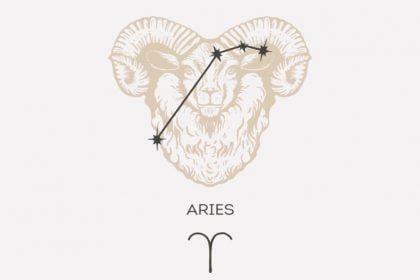 Ilustração e constelação do signo de Áries em um fundo cinza