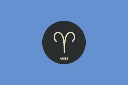 Ilustração do signo de Áries em um círculo sobre um fundo azul