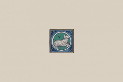 Ilustração do signo de Áries em um estilo medieval, mostrando um carneiro branco em fundo verde