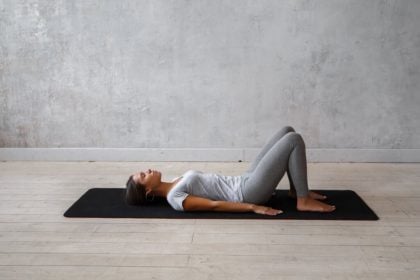 - Coloque um colchonete no chão, deite-se com as costas viradas para o solo e as pernas esticadas;