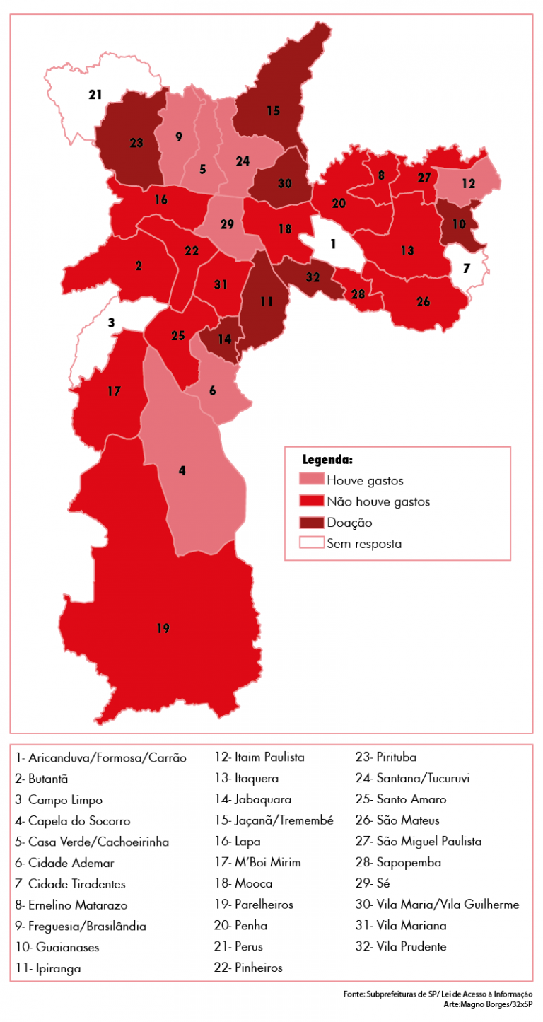 Os gastos, somados, chegam a R$ 31,5 mil. A maior parte das subprefeituras, no entanto, afirma não ter arcado com custos extras.