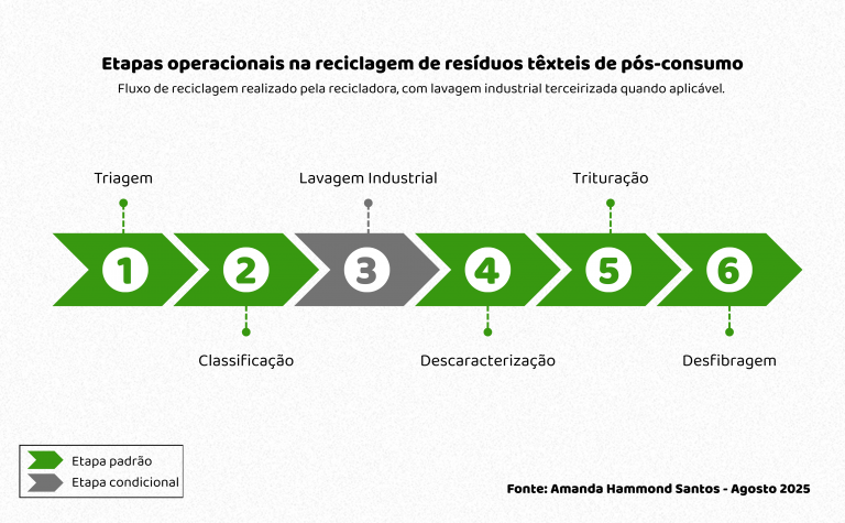 Etapas operacionais na reciclagem de resíduos têxteis de pós-consumo
