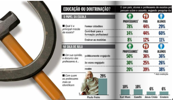 O ataque direto a Paulo Freire partiu de uma pergunta feita a professores sobre com quem (pelas alternativas, com qual homem) eles mais se identificavam. Nas possibilidades de respostas figuravam Jesus, Einstein, Gandhi, Marx e Freire. O leitor atento notará que Freire era, por seu ofício, o mais identificado com a profissão de professor. No entanto, o fato do educador ter ficado em primeiro lugar na enquete (com 29% dos votos) foi o suficiente para a destilação do ódio da revista: