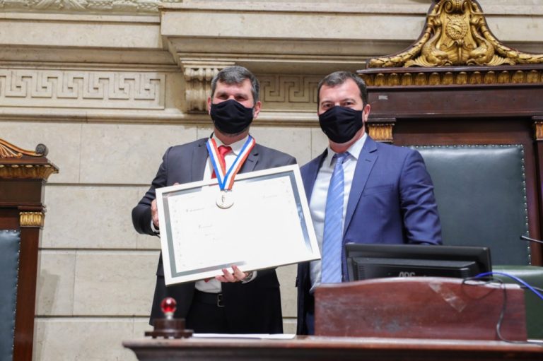 Fábio Queiroz, Presidente da Asserj, recebeu a medalha Pedro Ernesto, uma homenagem concedida pelo Legislativo municipal (Foto: Câmara Municipal do Rio de Janeiro)