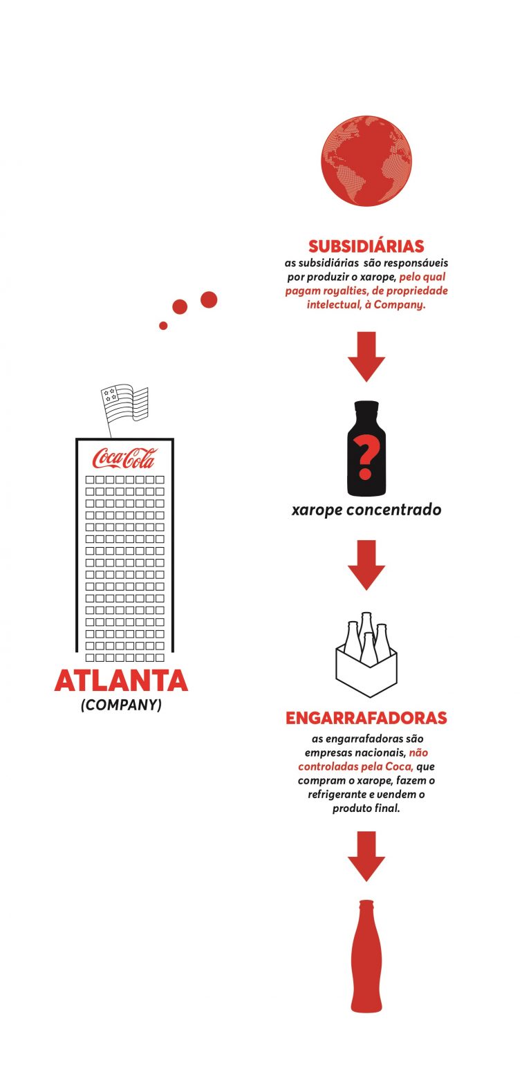 Dentro dessa orquestra, cada músico tem a sua função e níveis de autonomia: as subsidiárias atuam como braços da Company em diferentes países, controladas pela empresa-mãe. E são responsáveis por produzir o xarope, pelo qual pagam royalties, de propriedade intelectual, à Company. Já as engarrafadoras são empresas nacionais, não controladas pela Coca, que compram o xarope, fazem o refrigerante e vendem o produto final.