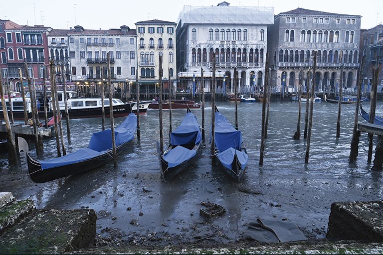 Os canais menores praticamente secaram, comprometendo, inclusive, o cotidiano das cidades da região, já que eles servem como hidrovias para o transporte fluvial que atende a população. Segundo os especialistas, os problemas são resultado de uma combinação de fatores que vai da ausência de chuvas até a direção das correntes marítimas. “No meio do inverno, a alta pressão atmosférica, combinada com o ciclo lunar, produz os níveis de água ultrabaixos”, explica Jane Da Mosto, cientista ambiental e analista de desenvolvimento sustentável da We Are Here Venice, ressaltando a necessidade de limpeza da rede de canais internos de Veneza.
