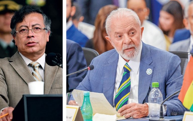 Enquanto a Casa Branca ataca o colombiano Petro, Lula reafirma a soberania do subcontinente – Imagem: Ricardo Stuckert/PR e Raul Arboleda/AFP