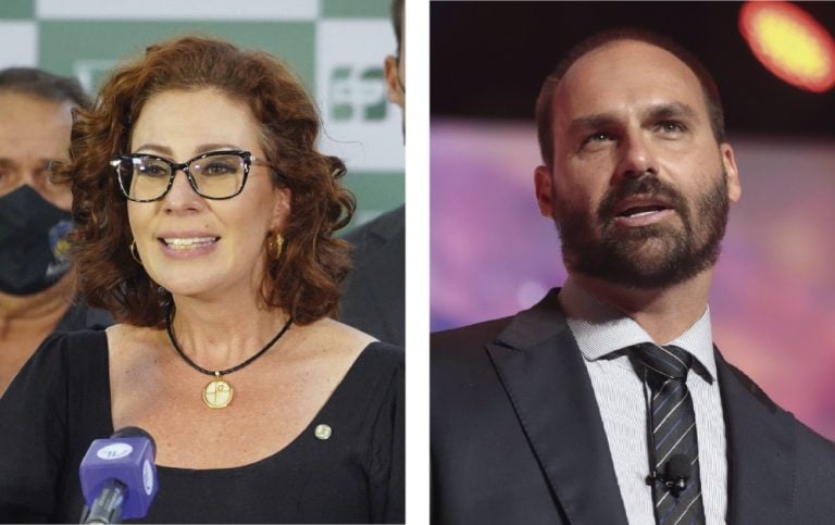 Zambelli, condenada à prisão, não foi cassada. A Câmara continua a bancar um traidor da pátria – Imagem: Gage Skidmore e Pablo Valadares/Agência Brasil