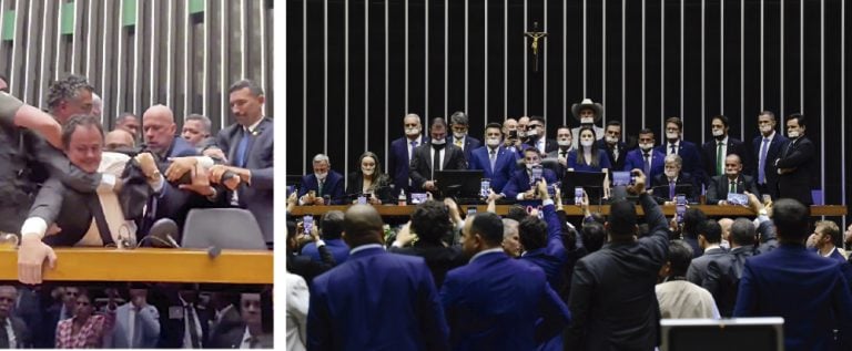 O Planalto deu o troco no presidente da Câmara em outro embate. Além da votação de redução de pena de golpista, Motta mandou ao plenário a cassação de Glauber Braga, do PSOL do Rio de Janeiro, acusado de quebra de decoro por ter chutado um militante do MBL que havia ofendido a sua mãe nos corredores do Congresso. Na véspera de o processo ir a voto, Braga ocupou a cadeira da presidência da Casa e foi retirado à força pela polícia legislativa por ordem do próprio Motta, conforme o chefe dos seguranças revelou a jornalistas. Repórteres foram agredidos do lado de fora do plenário, tinham sido proibidos de entrar. Tudo sem um registro sequer da TV Câmara, devidamente censurada. O episódio custou a Motta uma queixa-crime na Procuradoria-Geral da República por lesão corporal e autoria intelectual das agressões.