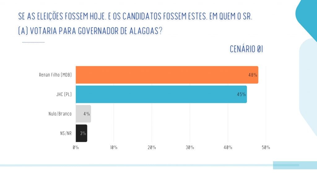 João Henrique Caldas (PL) e Renan Filho (MDB) aparecem tecnicamente empatados