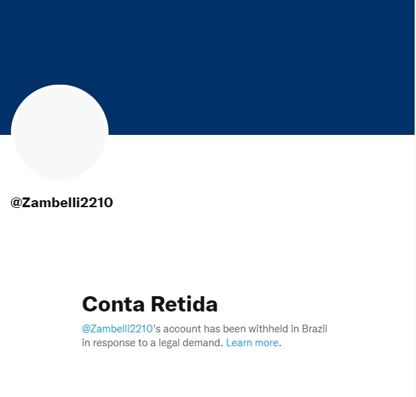 Ao tentar acessar o perfil da parlamentar no Twitter, surge um aviso da plataforma dizendo que a conta foi ‘retida no Brasil em uma resposta a uma demanda judicial’.
