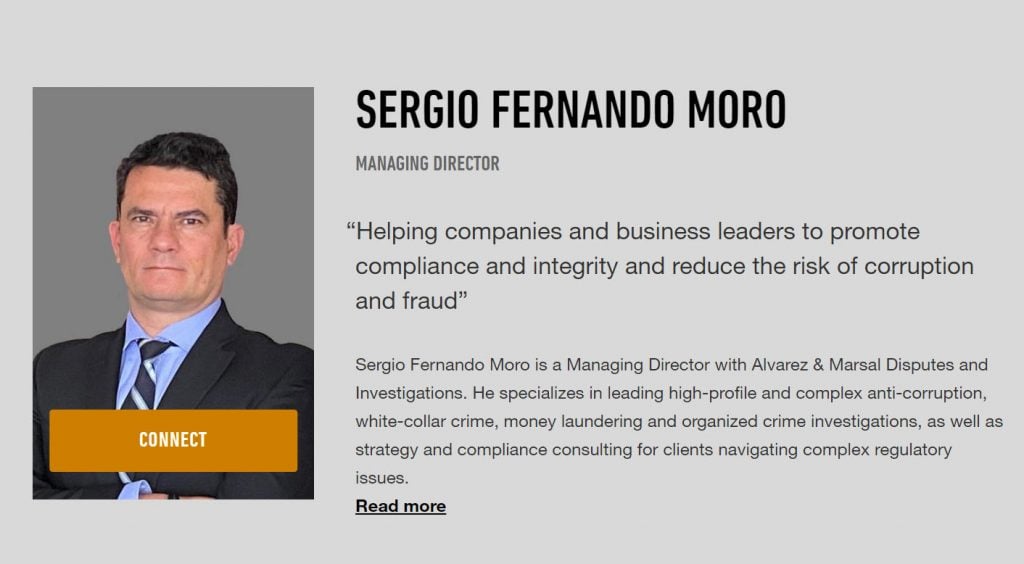 No site oficial da Alvarez & Marsal, no entanto, Moro ainda aparece como diretor da empresa:
