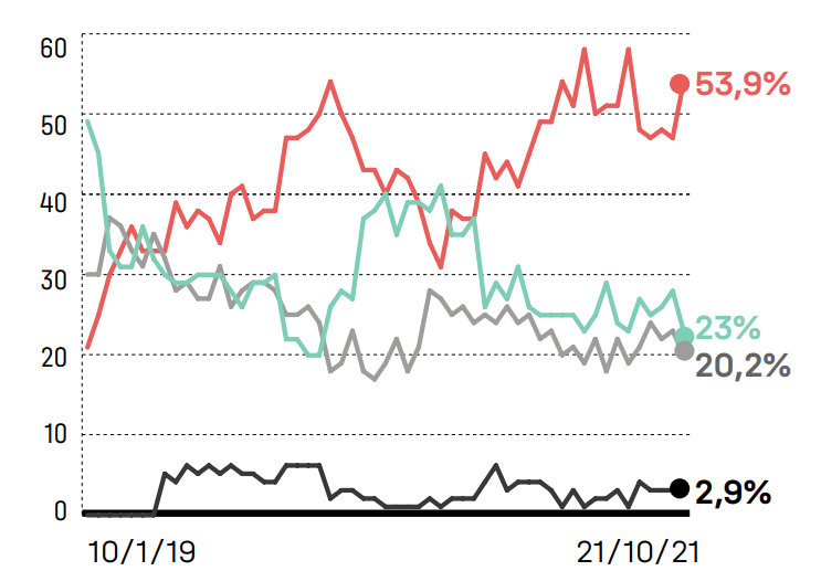 “Aprovação de Jair Bolsonaro, apesar de bastante resiliente na casa de 25%, no histórico é bastante inferior aos pares dele que conseguiram a reeleição no Brasil pós-redemocratização, como Fernando Henrique Cardoso, Luiz Inácio Lula da Silva e Dilma Rousseff. Bolsonaro tem duas variáveis bastante preocupantes para uma possível reeleição: forte rejeição refletida no avaliação ruim, e baixa aprovação”, afirmou Maurício Moura, fundador do IDEIA, à revista Exame.
