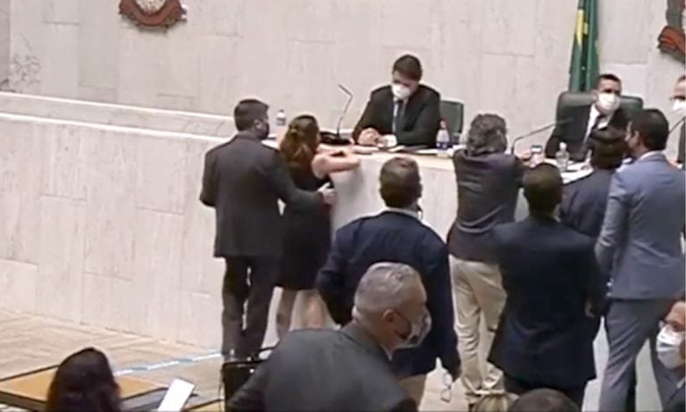 As câmeras da Assembleia Legislativa de São Paulo mostraram o momento em que Fernando Cury apalpou a deputada Isa Penna; ele deve ser a escolha tucana para concorrer ao comando de Ipatinga