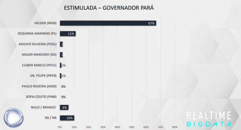 Pesquisa Real Time Big Data, divulgada nesta segunda-feira 3, mostra que o governador do Pará e candidato à reeleição, Helder Barbalho (MDB), lidera a corrida eleitoral no estado com chances de vitória no primeiro turno.