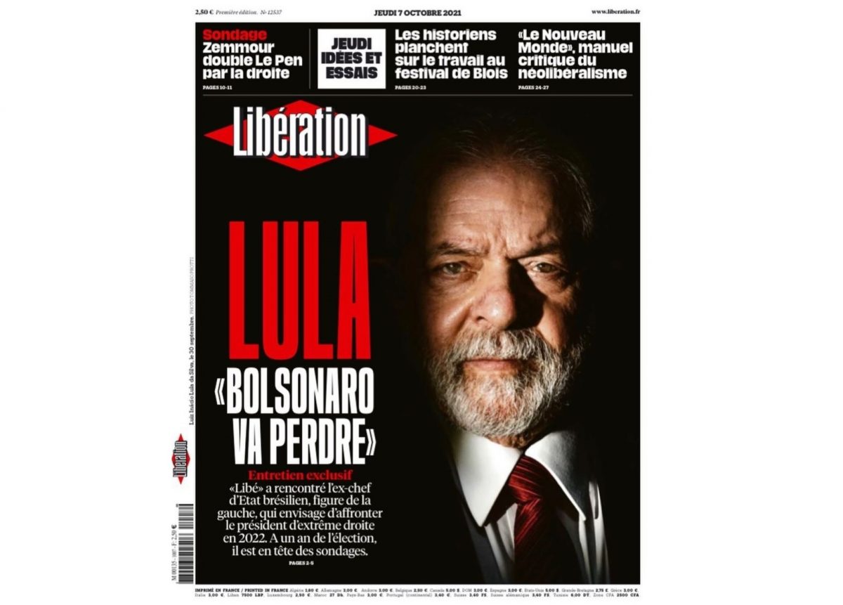 O ex-presidente Lula afirmou, em entrevista ao jornal francês Libération, que o presidente Jair Bolsonaro perderá a eleição de 2022 e que o povo brasileiro fará com que o País supere o momento de crise econômica, social e política.