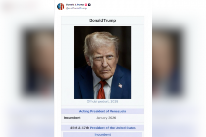 Em meio à escalada sem precedentes da crise entre os Estados Unidos e a Venezuela, o presidente norte-americano, Donald Trump, publicou na plataforma Truth Social uma montagem de sua biografia na Wikipédia em que aparece como “presidente interino da Venezuela” desde janeiro de 2026