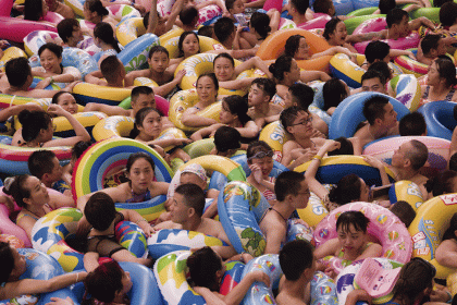 Embora em algumas imagens a nacionalidade seja bem demarcada – caso de uma piscina sem água na China, com um aglomerado de gente em boias coloridas –, na maioria delas a marca local aparece diluída. As cenas do metrô de Tóquio poderiam ter sido vistas em São Paulo, por exemplo. “Acho que as cidades, hoje, são todas muito parecidas”, reflete o fotógrafo.