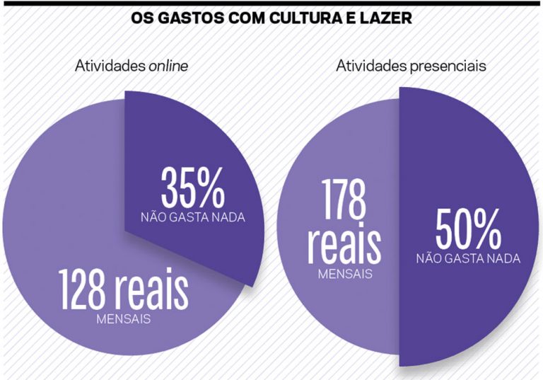 Outro dado que contribui para um entendimento mais aprofundado a respeito do consumo é aquele sobre o gasto efetivo das pessoas com cultura. Os brasileiros despendem, em média, 178 reais mensais com atividades culturais presenciais – e metade da população não gasta nada (ver quadro na pág. ao lado). E essa despesa inexiste nas classes D e E.
