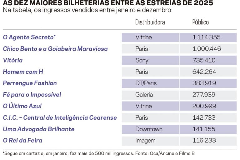 Em 2025, 203 filmes brasileiros estrearam nas salas. Dentre eles, apenas 40 venderam mais de 10 mil ingressos