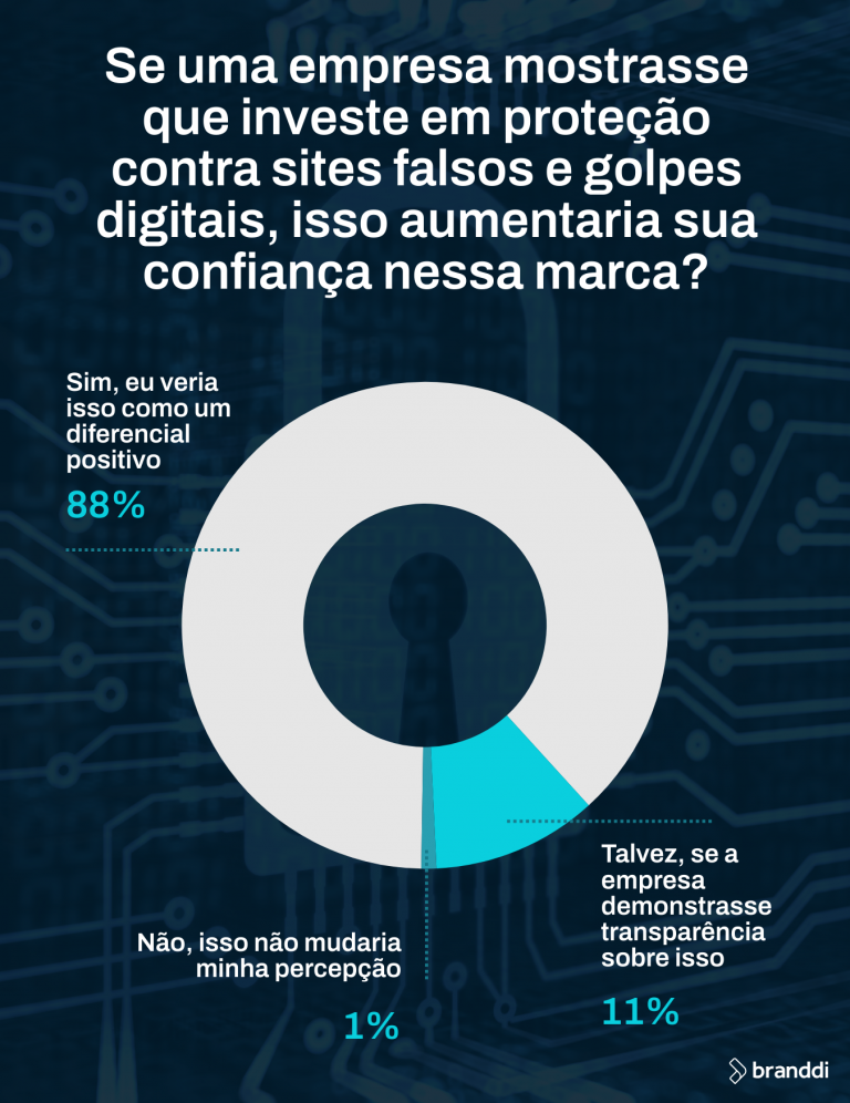 A expectativa do público é clara: 88% dos entrevistados afirmam que o investimento das empresas em ações contra golpes digitais é um fator que influencia positivamente na compra.