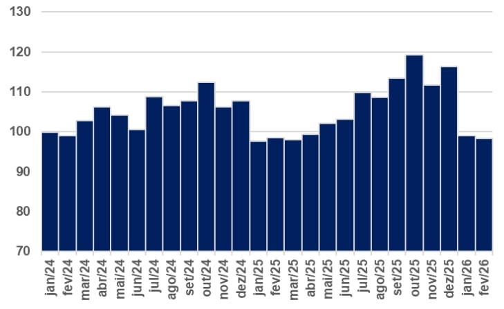 O Índice de Confiança do Consumidor da FGV recuou 1,2 ponto percentual em fevereiro, após já ter caído 1,8 ponto em janeiro. Mesmo com a inflação arrefecendo nos últimos meses, com o IGP-M acumulado em 12 meses até fevereiro de 2026 recuando 2,67%, o impacto sobre as vendas das pequenas e médias empresas seguiu negativo.