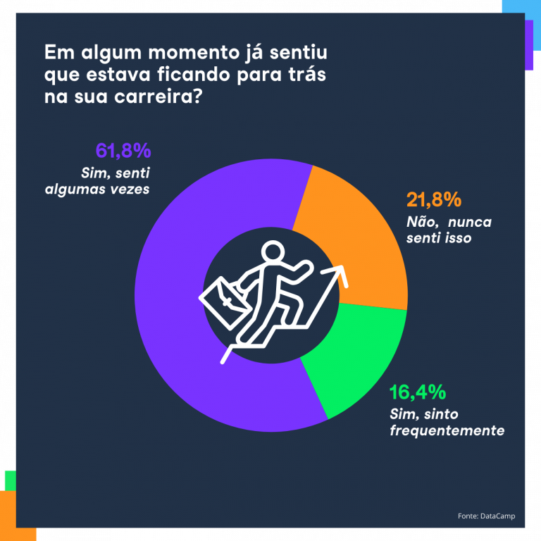 Segundo pesquisa da DataCamp, plataforma de cursos de dados e inteligência artificial, oito em cada dez brasileiros já sentiram que estavam ficando para trás em suas carreiras.