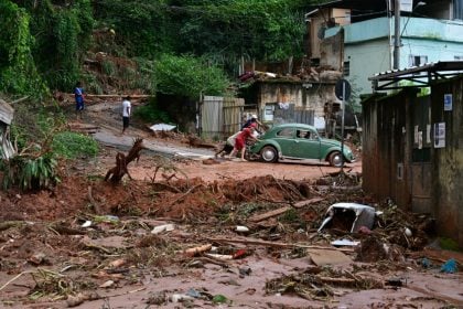 A chuva causou alagamentos em Juiz de Fora. Foto: Pablo Porciúncula/AFP