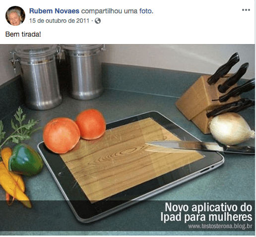 No humor do século passado de Novaes, o interesse feminino por tecnologia passa sempre pelas tarefas domésticas. O presidente do BB sacou sua “tirada” de um blog chamado Testosterona