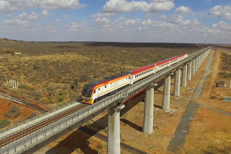 África. No Quênia, a nova ferrovia financiada pelos chineses reduziu o tempo de viagem de Nairóbi a Mombaça de 15 para quatro horas e meia e incrementou a economia local – Imagem: Kenya Railways