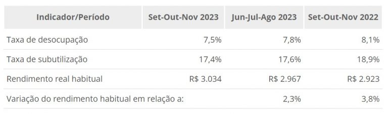 A taxa de desemprego no Brasil fechou o trimestre terminado em novembro em 7,5%. Os dados são da Pesquisa Nacional por Amostra de Domicílios Contínua, divulgada nesta sexta-feira 29 pelo IBGE. Em números absolutos, o índice representa um montante de 8,2 milhões de pessoas.