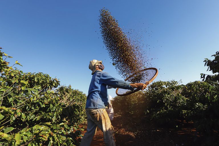 Cafezais. Com mais gás carbônico na atmosfera e menos água no solo, a tendência é de queda na produção – Imagem: iStockphoto