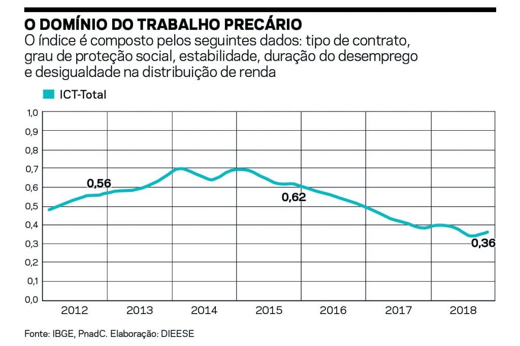 “O cenário atual é de lento crescimento da ocupação a partir de empregos precários, o que é completamente diferente da situação verificada até 2014. E, diante da conjuntura econômica atual, há poucas possibilidades de melhora do mercado de trabalho para os próximos anos”, conclui o estudo.
