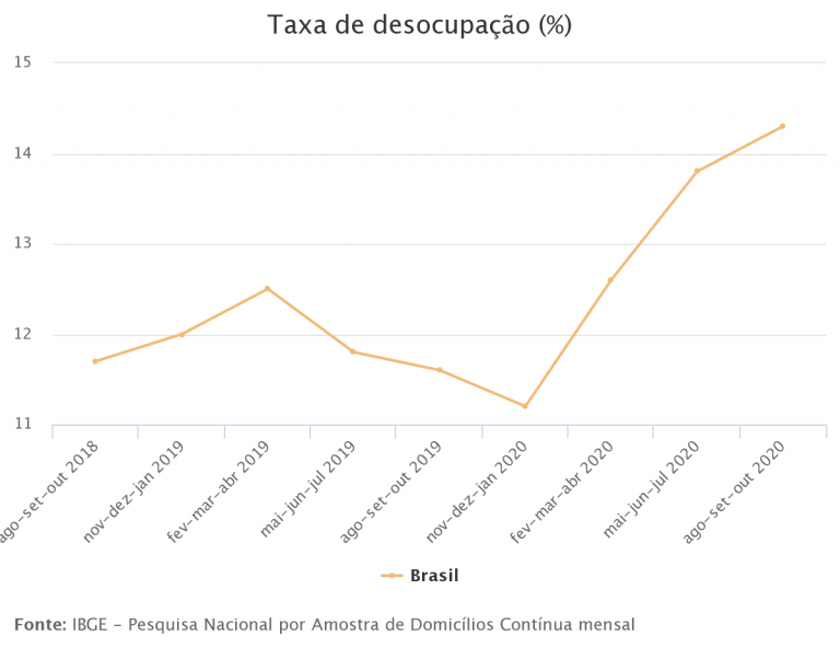 Até outubro, último dado do IBGE, 14,1 milhões de brasileiros estavam desempregados. Já o número de desalentados (pessoas que desistiram de buscar emprego por acharem que não iriam encontrar) ficou em 5,8 milhões.