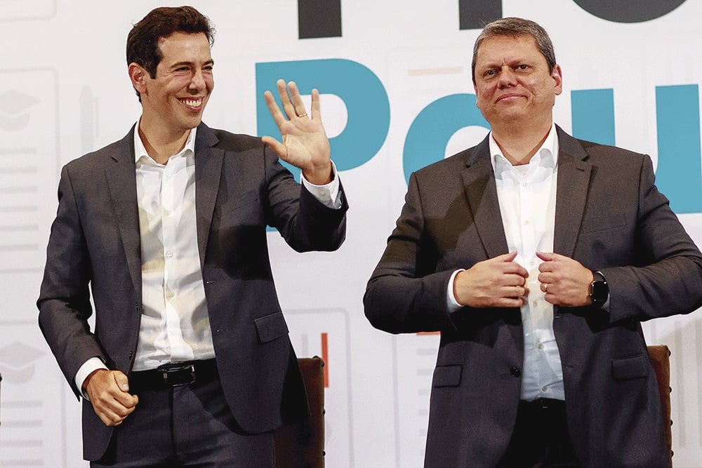 O secretário da Educação, Renato Feder, e o governador de São Paulo, Tarcísio de Freitas (Republicanos). Foto: GOVSP/Reprodução