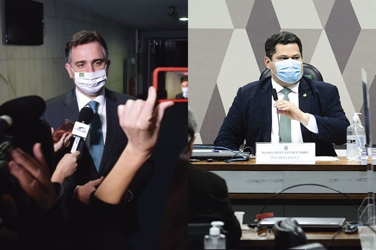 Em banho-maria. Rodrigo Pachecoe David Alcolumbre não movem uma palha pelo “candidato” ao Supremo. (FOTO: Pedro França/Ag.Senado e Marcos Brandão/Ag.Senado)