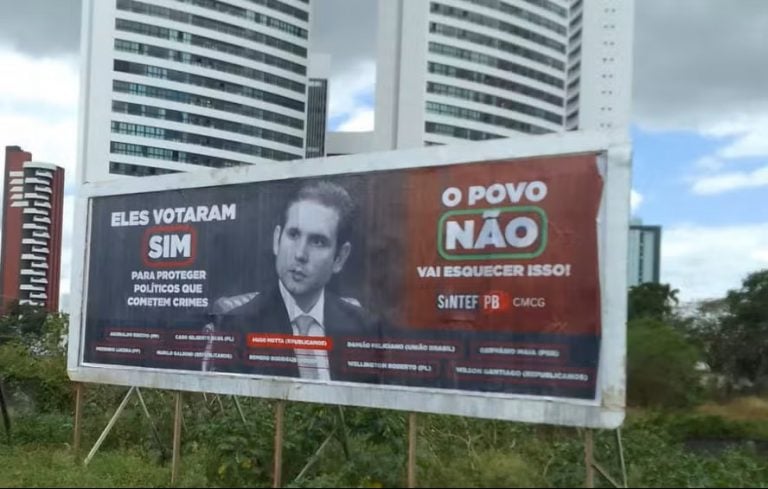 Outdoor com críticas ao presidente da Câmara, Hugo Motta (Republicanos-PB). Foto: Reprodução