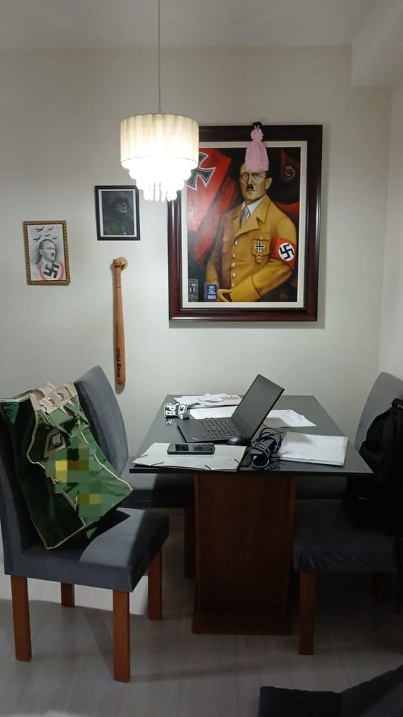 Símbolos nazistas e imagens do Hitler encontradas no endereço de um dos alvos. Foto: Divulgação/MPSC