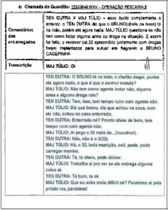 Diálogo entre o major Sérvio Túlio Cavalcanti Ramalho e o tenente Bruno Alves Dutra obtido por interceptação telefônica.