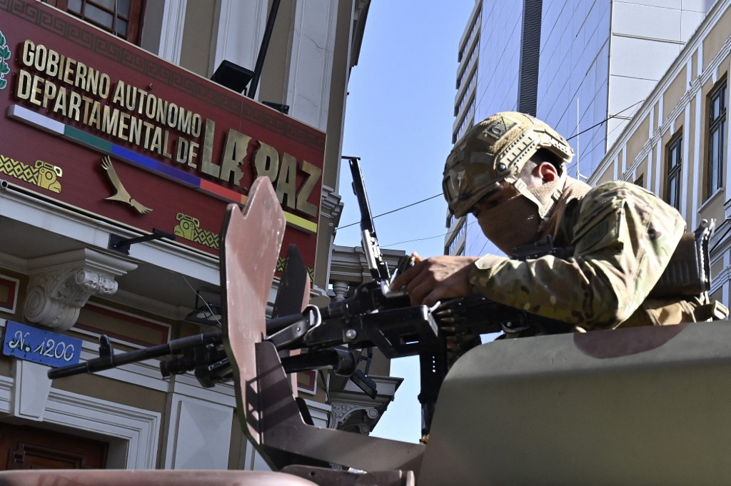 Tropas militares tomam praça em La Paz, na Bolívia, em 26 de junho de 2024. Foto: Aizar Raldes/AFP