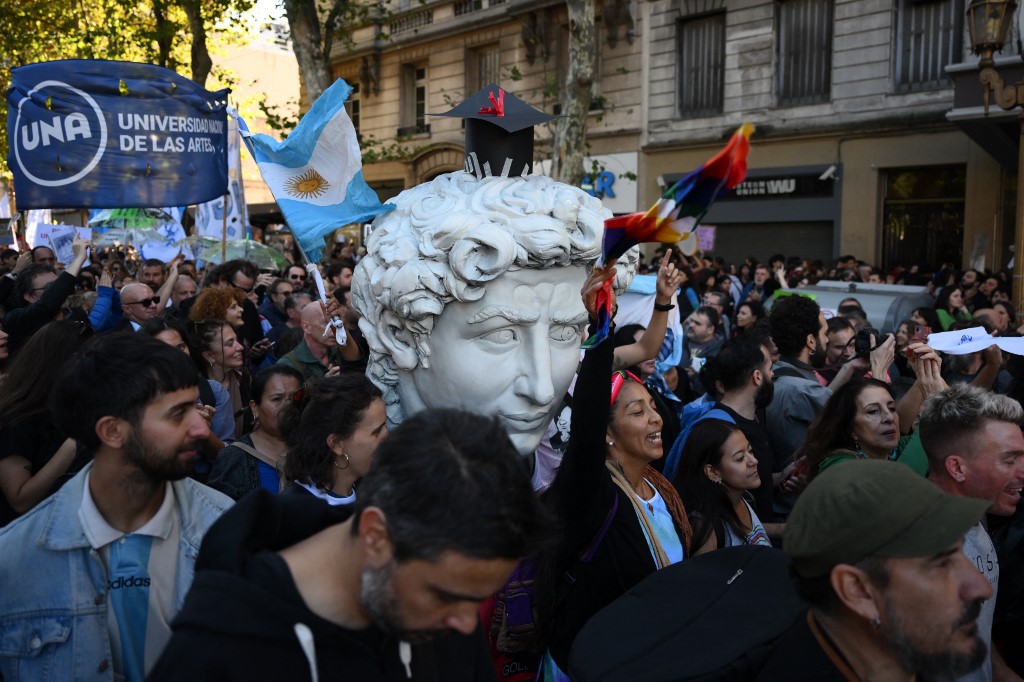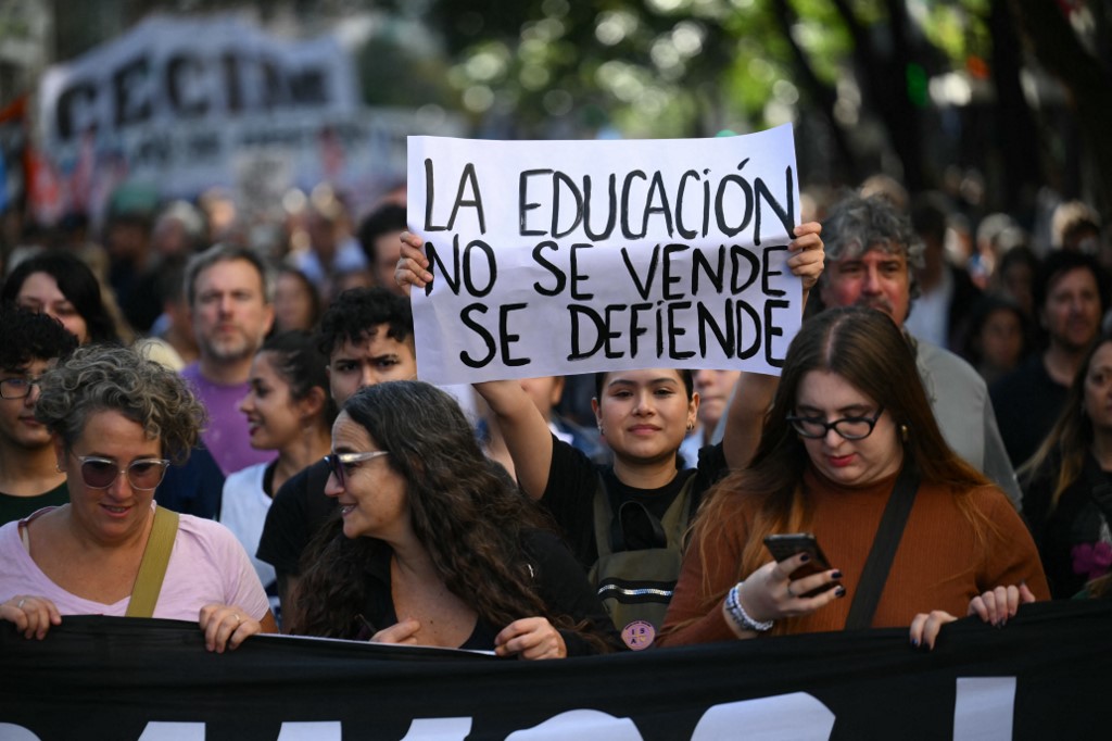 “A educação nos salva e nos torna livres. Convocamos a sociedade argentina a defendê-la”, disse a estudante e presidente da Federação Universitária Argentina, Piera Fernández, à agência AFP.
