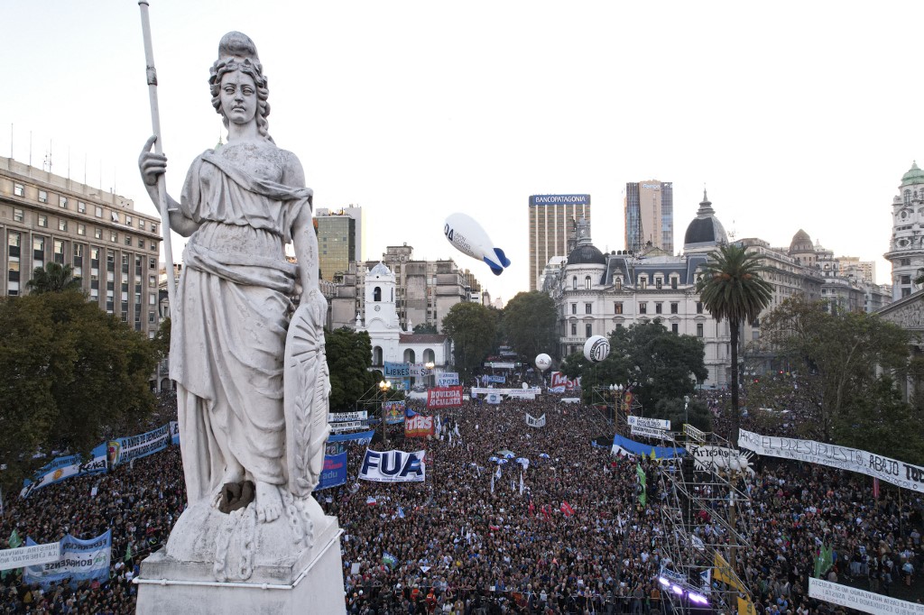 Entre 100 mil pessoas, segundo a polícia, e meio milhão, de acordo com a Universidade de Buenos Aires, participaram da mobilização na capital argentina. Outras dezenas de milhares protestaram em cidades do interior.