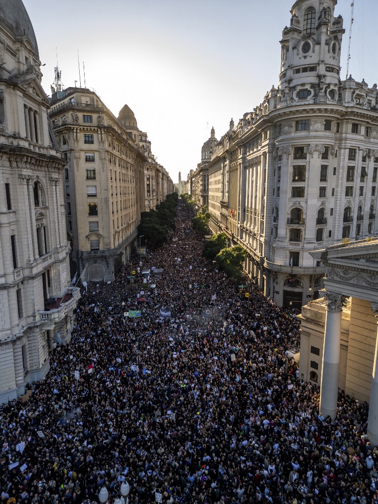 Centenas de milhares de argentinos vão às ruas em defesa das universidades e contra cortes de Milei; confira imagens