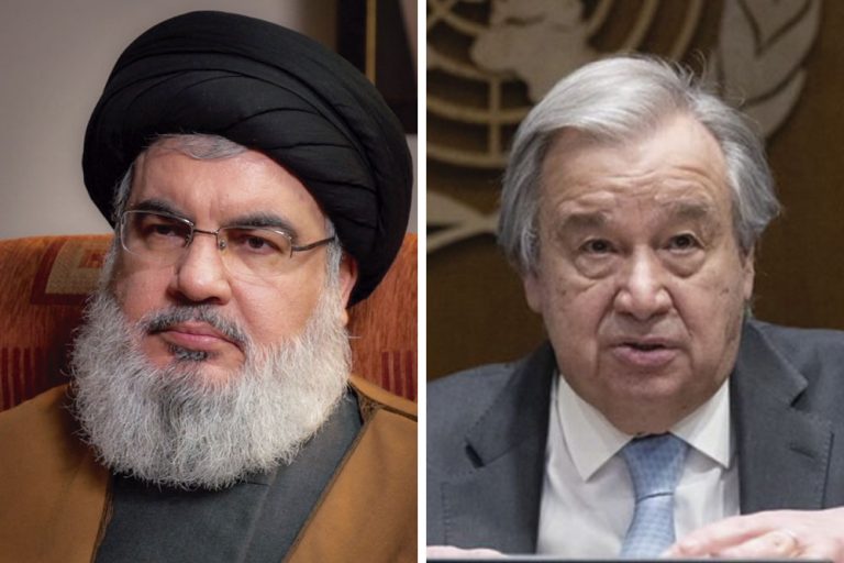 Nasrallah, líder do Hezbollah, morreu em um dos bombardeios. Como Lula, Guterres vira persona non grata em Israel – Imagem: Arquivo/AFP e Eskinder Debebe/ONU
