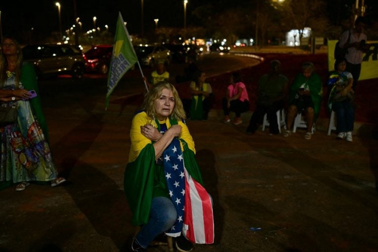 Bolsonaristas choram, nas ruas de Brasília, após o STF confirmar a sentença de 27 anos de prisão para o ex-capitão. Foto: Pablo PORCIUNCULA / AFP