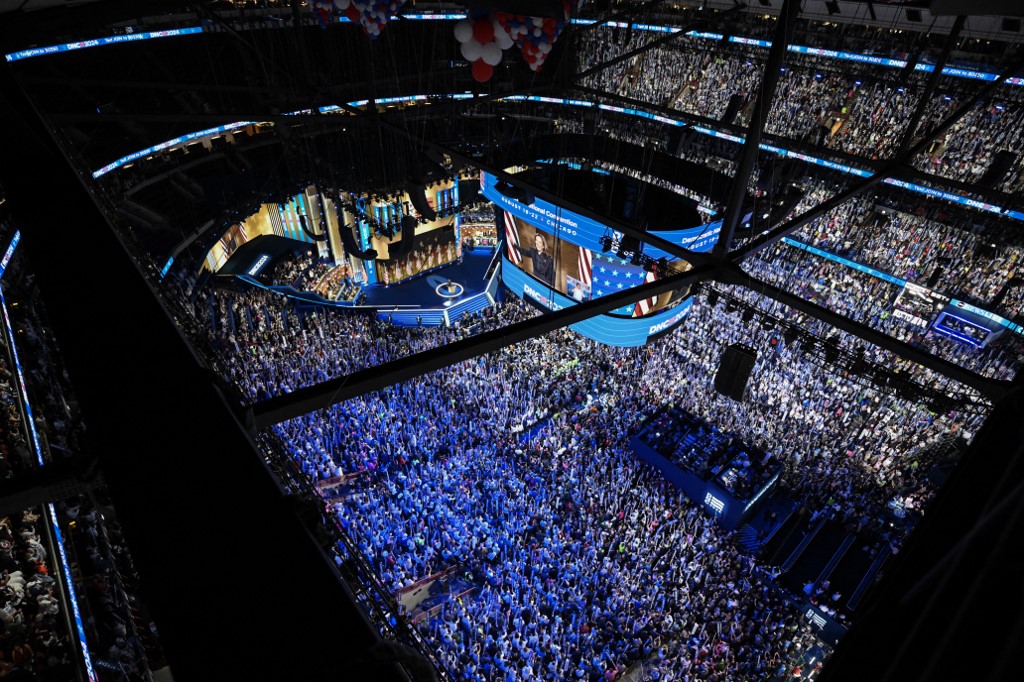 Registro aéreo da última noite da Convenção Nacional Democrata, em 22 de agosto de 2024. Foto: Eva Hambach/AFP