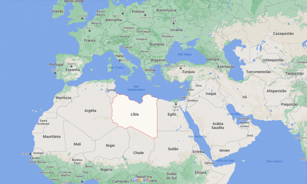 A Líbia está localizada no Norte da África, entre o Egito, a Argélia e a Tunísia. Foto: Reprodução/Google Maps