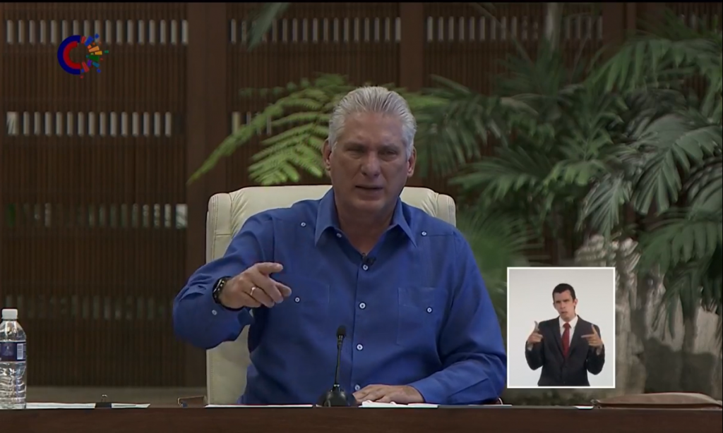 Miguel Díaz-Canel, presidente de Cuba, em pronunciamento após protestos. Foto: Reprodução