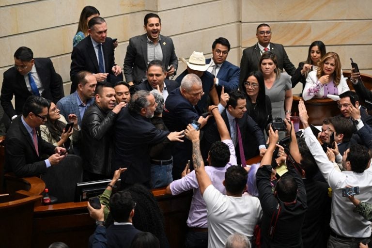 Confusão entre governistas e senadores da Colômbia durante votação sobre a reforma trabalhista de Petro.